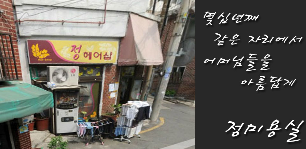 안녕하세요. 이화동 날개벽화 맞은 편에 위치한 정미용실입니다! 많이 이용해주세요! 감사합니다.
