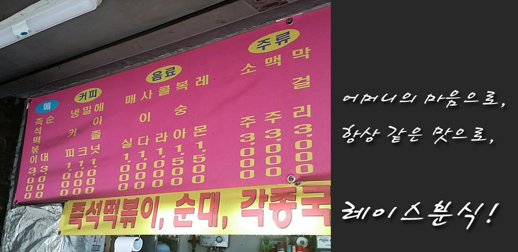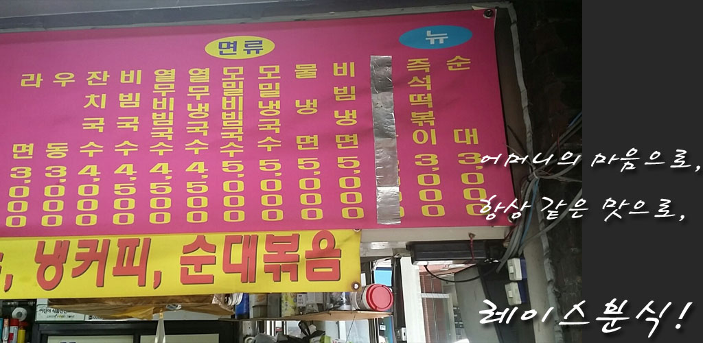 안녕하세요. 이화동에 위치한 레이스분식입니다! 많이 이용해주세요! 감사합니다.