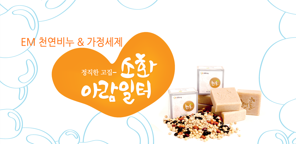 안녕하세요. 자연 그대로의 기업, 흰여울 소화아람일터입니다. 소화아람일터에서는 지극히 자연적이고 사람과 환경에 유용한 미생물 군을 배합하여 다양한 천연 세제류를 생산·판매하고 있습니다. 미생물의 활동으로, 쓰면 쓸수록 사람은 더욱 아름답고 건강해지며 자연은 더욱 푸르고 맑아지는 것이 저희 흰여율 브랜드가 가지고 있는 자부심이며 자랑입니다. 또한, 이사업의 모든 공정에 취약계층의 일자리 창출이라는 희망을 불어넣어 사회적 기업으로서 책임과 의무를 다하고 있습니다. 사람과 자연을 하나 되게 하는 기업, 사람과 사람을 연결하는 기업으로 흰여울의 모든 제품들이 최고를 고집하는 최고의 고객에게 기억될 것입니다. 소화아람일터 흰여울의 맑고 아름다운 제품들을 지금 만나 보십시오.
