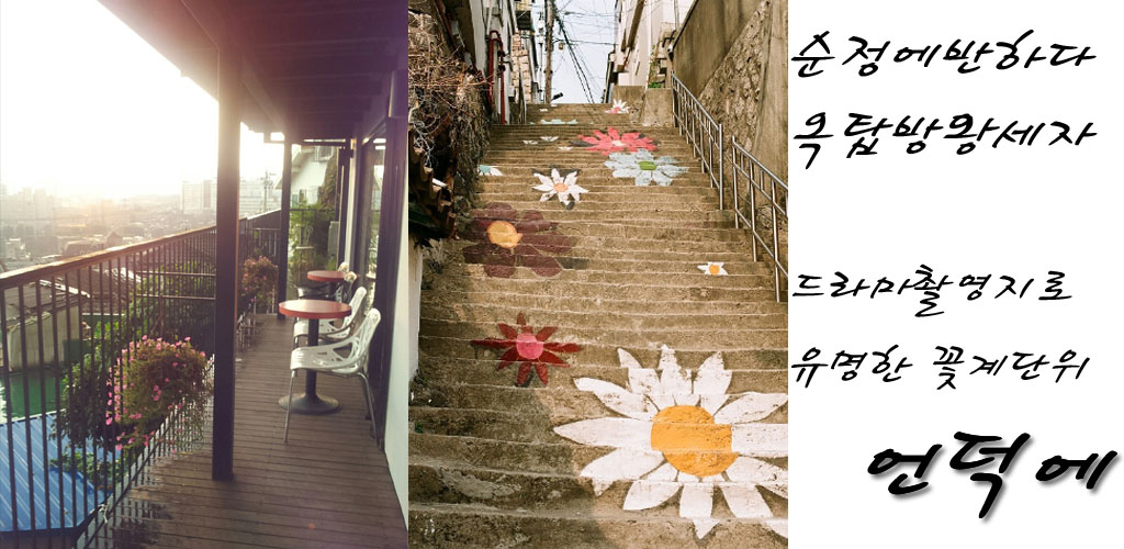 이화벽화마을 꽃계단에 위치한 아름다운 풍경과 맛있는 음료이 있는 카페 언덕에를 소개하는 앱입니다^-^*