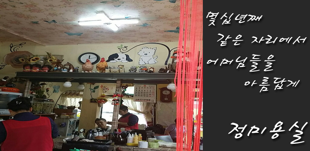 안녕하세요. 이화동 날개벽화 맞은 편에 위치한 정미용실입니다! 많이 이용해주세요! 감사합니다.