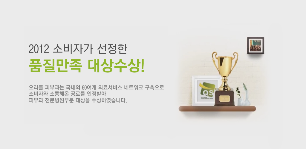 2004년도 대전에서 최초 개원한 오라클 클리닉은 체계화된 의료 시스템을 기반으로 하여 현재 국내 최대의 네트워크 병원으로 성장하였습니다. 고객만족을 최우선으로 생각하는 오라클 클리닉은 높은 의료수준뿐만 아니라 지속적은 소통과 세심한 배려로써 고객만족을 실현하고 있으며, 각종 대외 수상실적을 통해 이미 높은 고객 만족도를 입증하고 있습니다. “진료의 표준화와 체계화로 국제적 경쟁력이 있는 병원”을 목표로 2015년 현재 국내 피부과 1천여개 중 1위, 성형외과 1천여개 중 10위권이며, 국내 최고의 의료진 (피부과 전문의 80명, 성형외과 전문의 7명, 치과 전문의 6명) 과 전체 STAFF 약 500명이 근무하고 있습니다. 글로벌 의료시장을 선도하는 종합 헬스 케어 그룹을 목표로 국내 뿐 아니라 중국 20여개지점, 대만, 베트남, 필리핀, 인도네시아 등 세계 각지로 뻗어가고 있으며, 현재 중국 내 한국 피부/성형외과 프랜차이즈 지점 수 1위입니다.